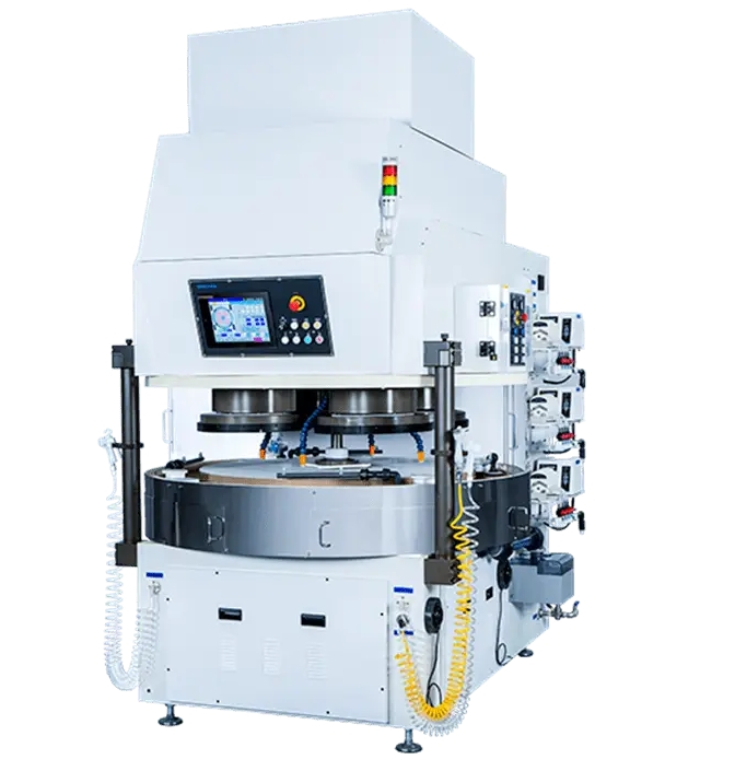 晶圓雙面研磨機的優勢首先體現在其雙面磨削的設計上。這一特性使得晶圓片在加工過程中能夠同時受到來自兩個方向的磨削力,從而實現了雙面均勻磨削。相比傳統的單面研磨機,雙面研磨機在加工時間上實現了減半,甚至更多,尤其適用于大批量、高精度要求的片狀零件加工。這種設計不僅提高了生產效率,還降低了生產成本,為制造業企業帶來了顯著的經濟效益。